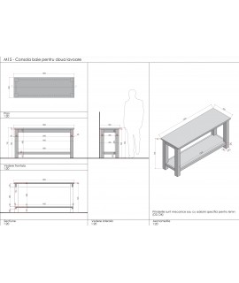 Aceasta consola pentru baie din lemn masiv este potrivita pentru 2 lavoare. Realizata din lemn masiv de rasinoase cu o grosime de 2,7cm, consola include o rama perimetrala de 8cm. Dimensiunile produsului de prezentare sunt 150cm (L) | 75cm (h) | 50 cm (a). Specific lemnului de rasinoase sunt vizibile nodurile, textura si fibra lemnului. Pentru un aspect contemporan, scandinav se va alege lemnul masiv de stejar cu grosimea de 2cm. Produsul se livreaza asamblat, fiind agabaritic.