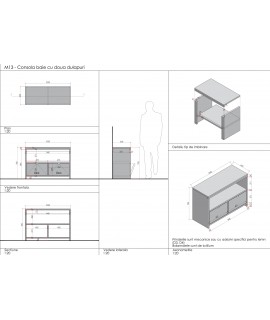 Consola pentru lavoar (baie) este un produs care iti va incalzi si infrumuseta spatiul de baie. Daca la acestea adaugam si functionalitatea, devine produsul ideal. Consola este realizata din lemn masiv de rasinoase cu grosimea de 2,7cm. In partea inferioara aceasta prezinta 2 dulapuri prevazute cu usi batante – deschidere in jos. Dimensiunile acesteia sunt: 100cm (L) | 75cm (h) 50cm (a). Specific lemnului de rasinoase sunt vizibile nodurile, textura si fibra lemnului. Pentru un aspect contemporan, scandinav se va alege lemnul masiv de stejar cu grosimea de 2cm. Produsul se livreaza asamblat, fiind agabaritic.
