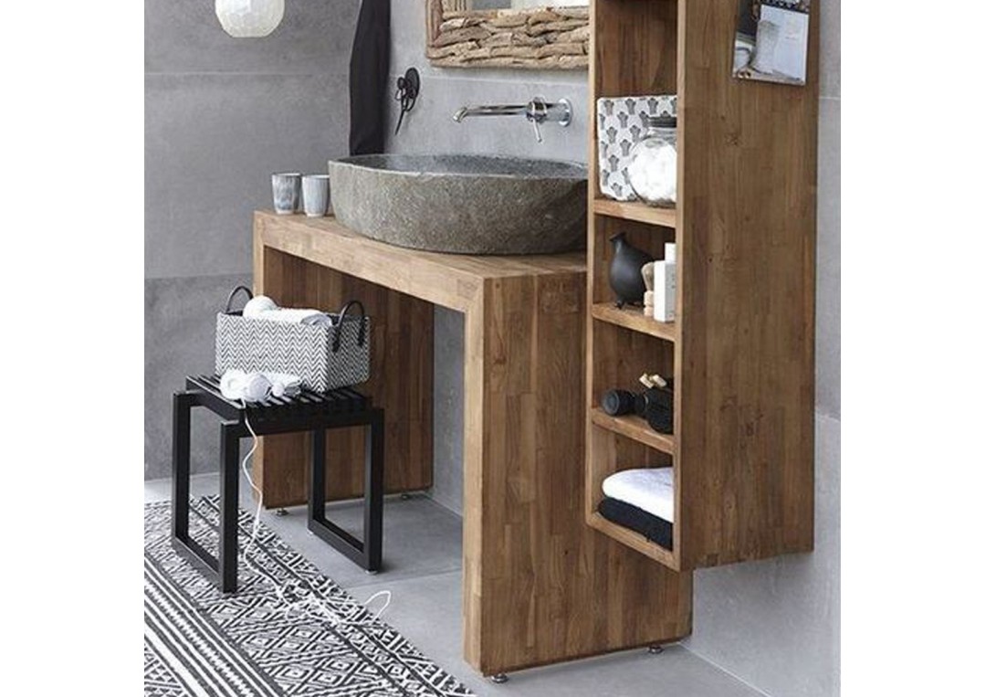 Set pentru baie lemn masiv | Consola si dulap / etajera