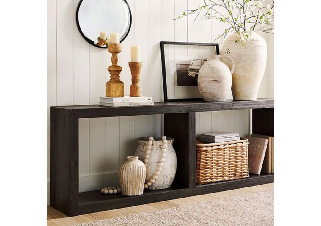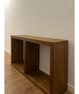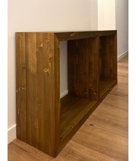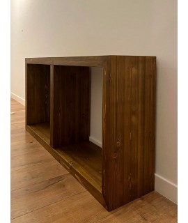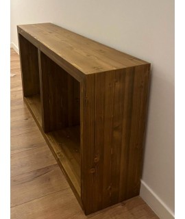 Un produs fain realizat din lemn masiv de rasinoase cu grosimea de 5,4 cm ce poate fi populat cu cosuri, rame, plante, vaze si vase din lut. Produsul este agabarit, livrandu-se asamblat. Dimensiunile sunt 130cm (L) / 30cm (a) / 70cm (h). Specific lemnului masiv de rasinoase sunt vizibile fibra, nodurile si textura lemnului. Pentru un aspect contemporan, modern se va alege lemnul masiv de stejar sau plywood-ul.