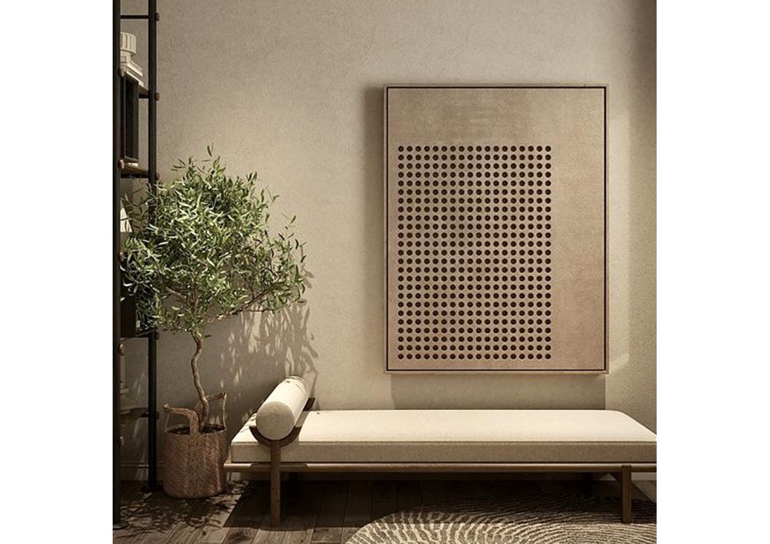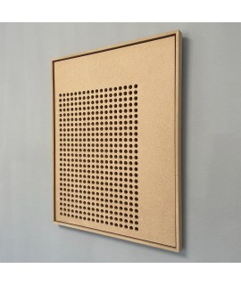 Un tablou deosebit realizat din mdf brut perforat incadrat de o rama floating (efect de plutire) realizata din acelasi material. Alternanta plin / gol este cea care atrage la acest produs. Dimensiuni produs prezentare: 77cm (L) | 61cm (l) | 4cm (a). Produsul poate fi vazut in showroom-ul din zona Dorobanti.