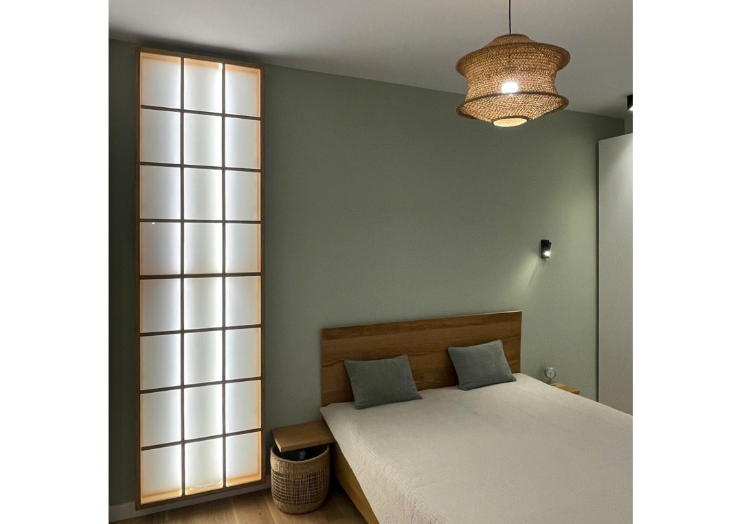 Vitraj Osaka | Panou luminos realizat din lemn masiv de stejar, sticla si led