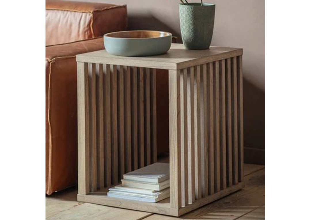 Doriti sa obtineti un ambient modern si de efect? Alegeti aceasta masuta din lemn masiv sau plywood (cu laterale tip riflaj) care se poate amplasa cu usurinta langa canapea!